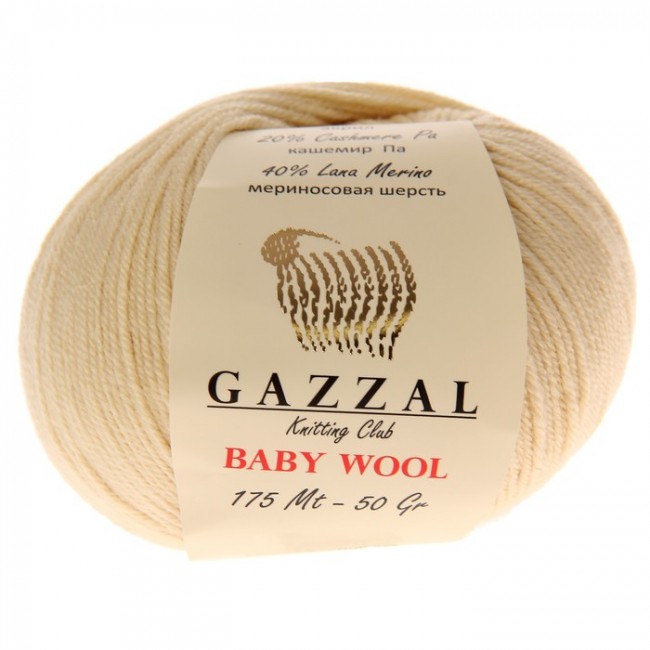 Пряжа Gazzal Baby Wool (40% Мериносовая шерсть, 20% Кашемир ПА, 40% Акрил) 50 г 175 м, 839 бежевый, 10 мотков